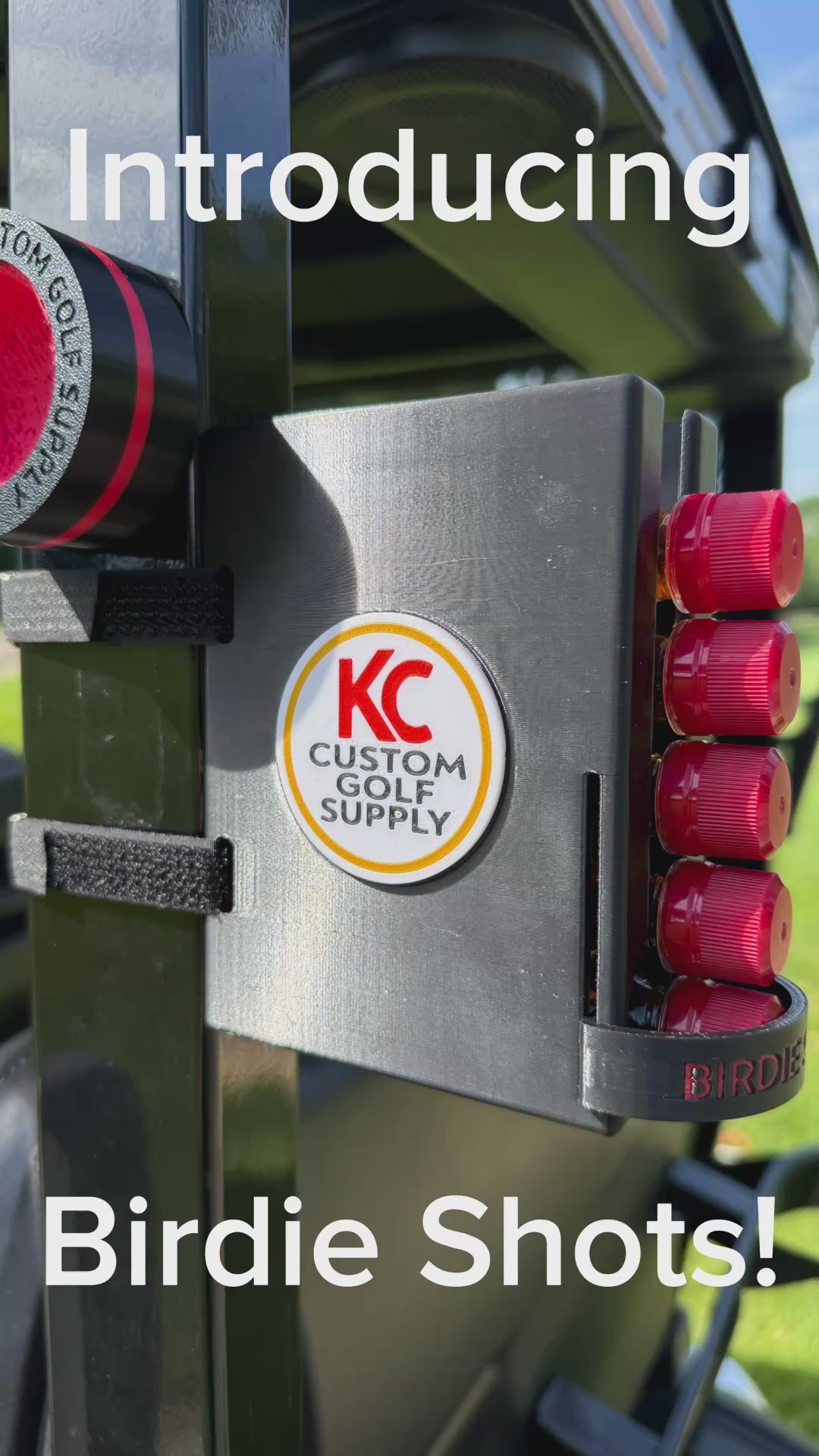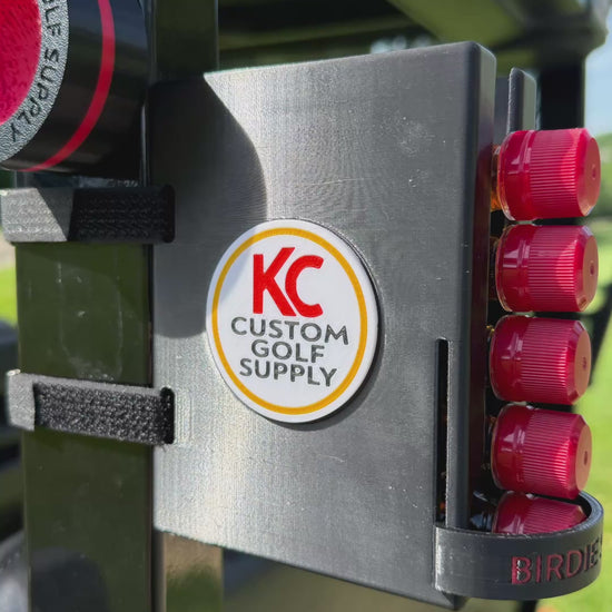 Turn up the fun on the fairway with the Birdie Shots™, the ultimate mini shooter dispenser designed for golfers who like their game with a little extra spirit. This compact, rugged dispenser velcros securely to the back of your golf cart, keeping your favorite mini bottles within easy reach.